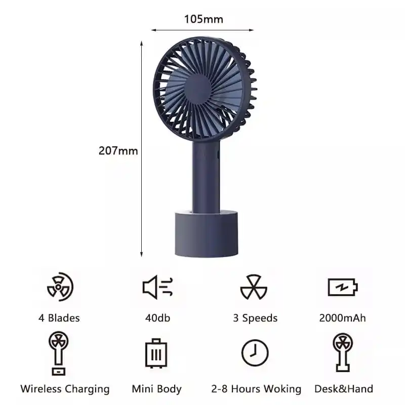 - 3 velocidades: a velocidade do ventilador portátil pode ser ajustada.